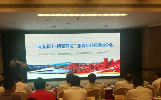 图说:“诗画浙江-阿克苏号”旅游专列开通推介会现场