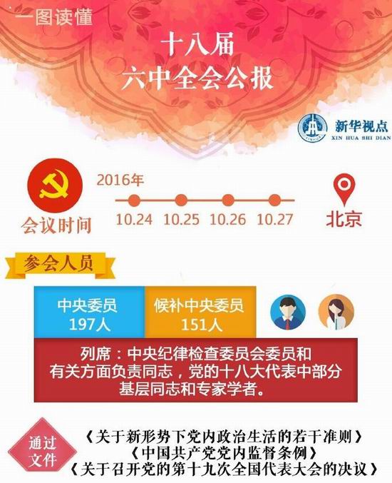 十八届六中全会今天在北京闭幕,全会公报也已发布。六千多字的全会公报,有哪些干货?小编帮你一图看懂!